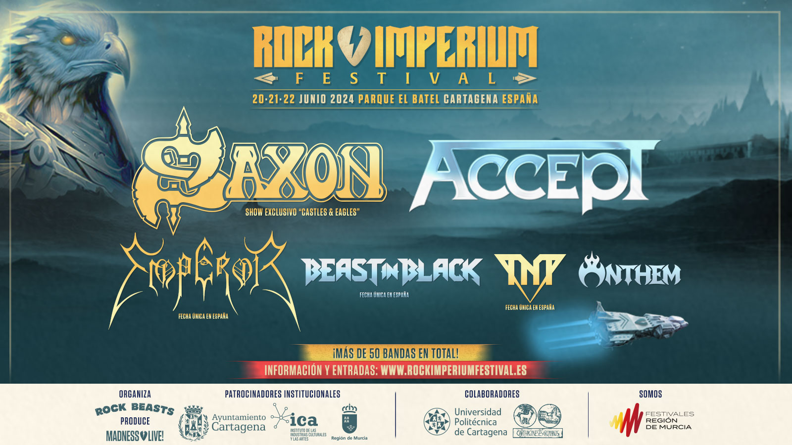 Los legendarios SAXON, pioneros y líderes indiscutibles de la NWOBHM traerán a Cartagena su exclusivo show “Castles & Eagles” con el que la formación británica celebra los 40 años de su primer álbum en vivo, el icónico “The Eagle Has Landed” (1982), considerado uno de los mejores directos de toda la década de los 80, y con el que estos cruzados del heavy metal conmemoran su edad dorada posicionándose como el primer cabeza de cartel para Rock Imperium Festival 2024.