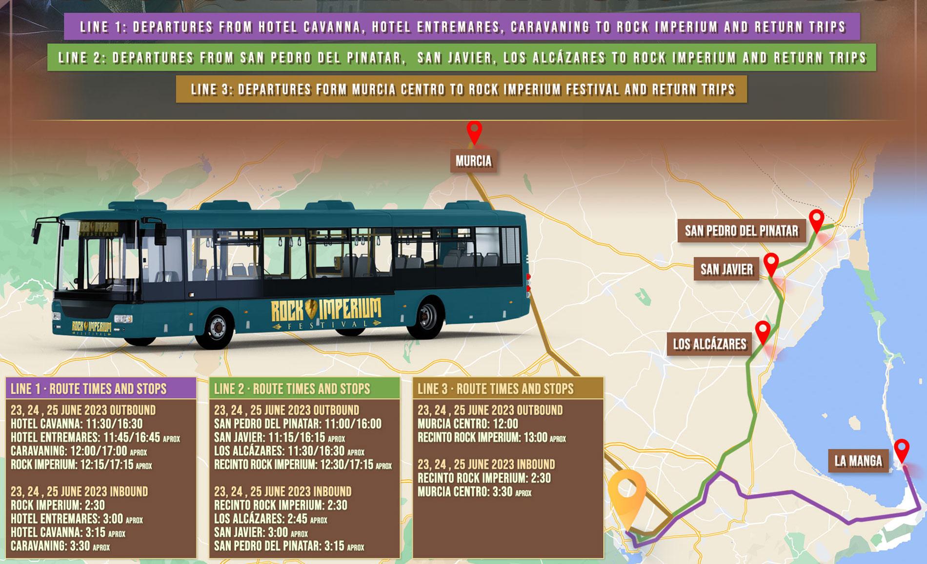 Départs de l’Hôtel Cavanna (La Manga) et de l’Hôtel Entremares (La Manga) en direction Lieu du Festival.